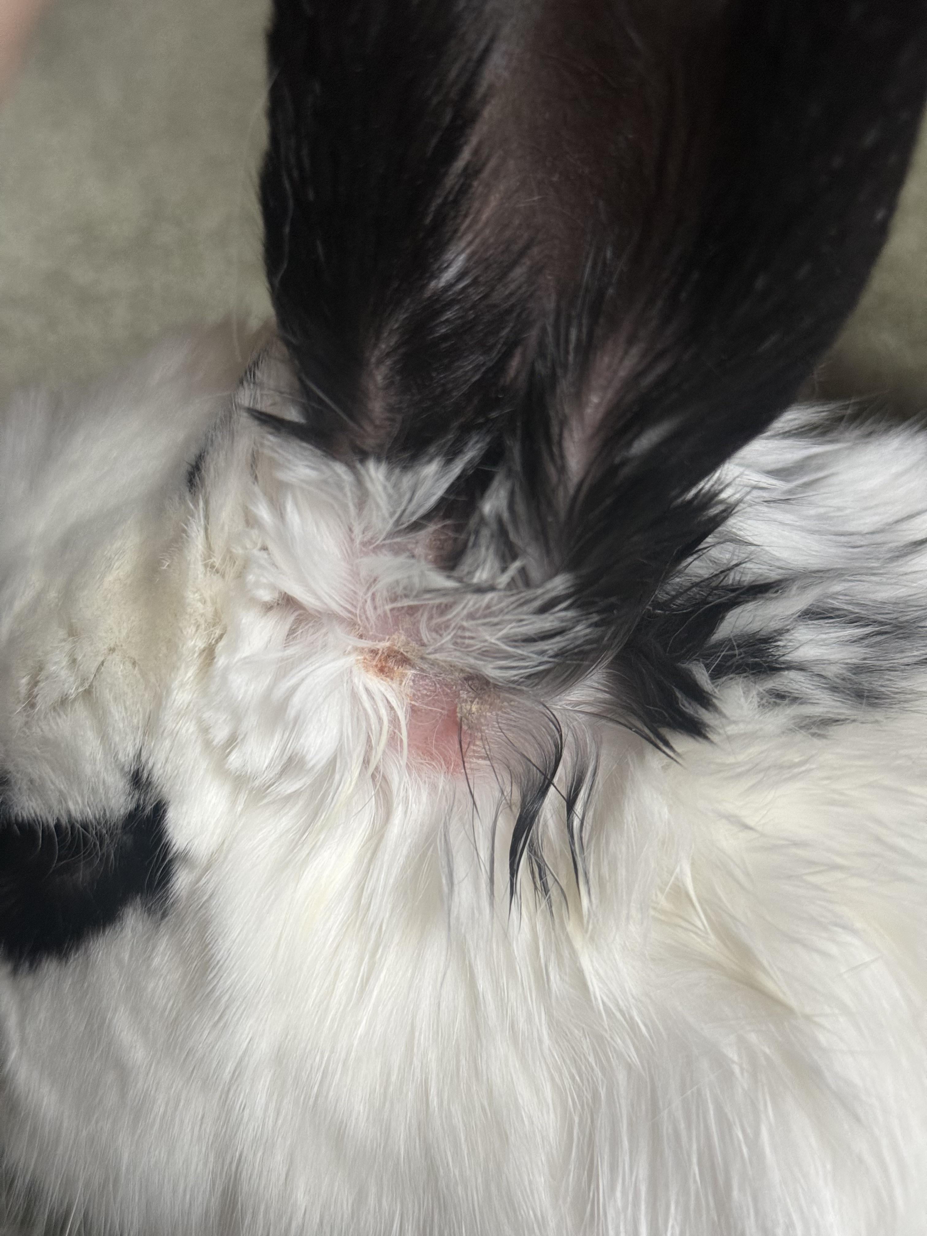 So we noticed this dry spot of skin under my bunny’s left ear. The right ear feels and looks completely fine. She doesn’t seem bothered when I touch this ear and hasn’t shown any signs of distress or discomfort. I’m wondering if this is probably because of the winter/maybe the heat on in the house causing humidity? There’s no fluids or smell coming from the area either