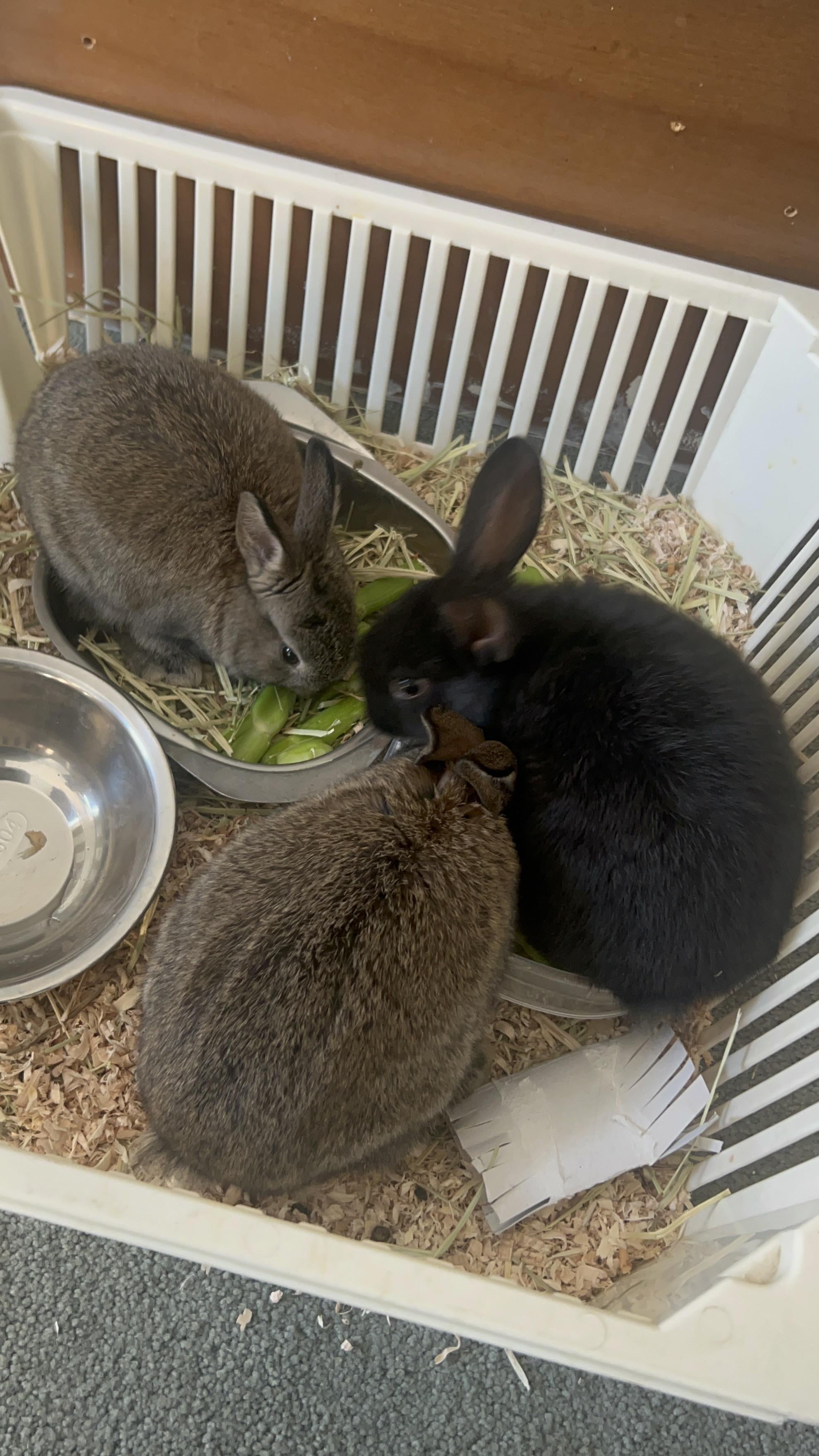 Just a bunny trio at lunch! Cage free and happy!