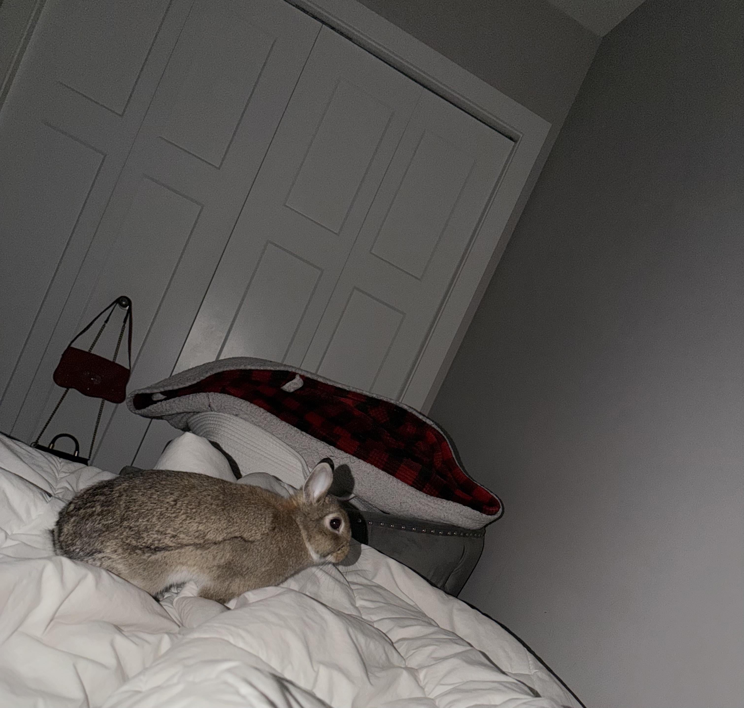 I’m a new bunny owner and found out that my 5 month old bunny can jump onto my bed. (I obviously knew they could, but he’s been pretty shy and not doing these types of things until recently—he’s also a dwarf and I didn’t think he could reach)