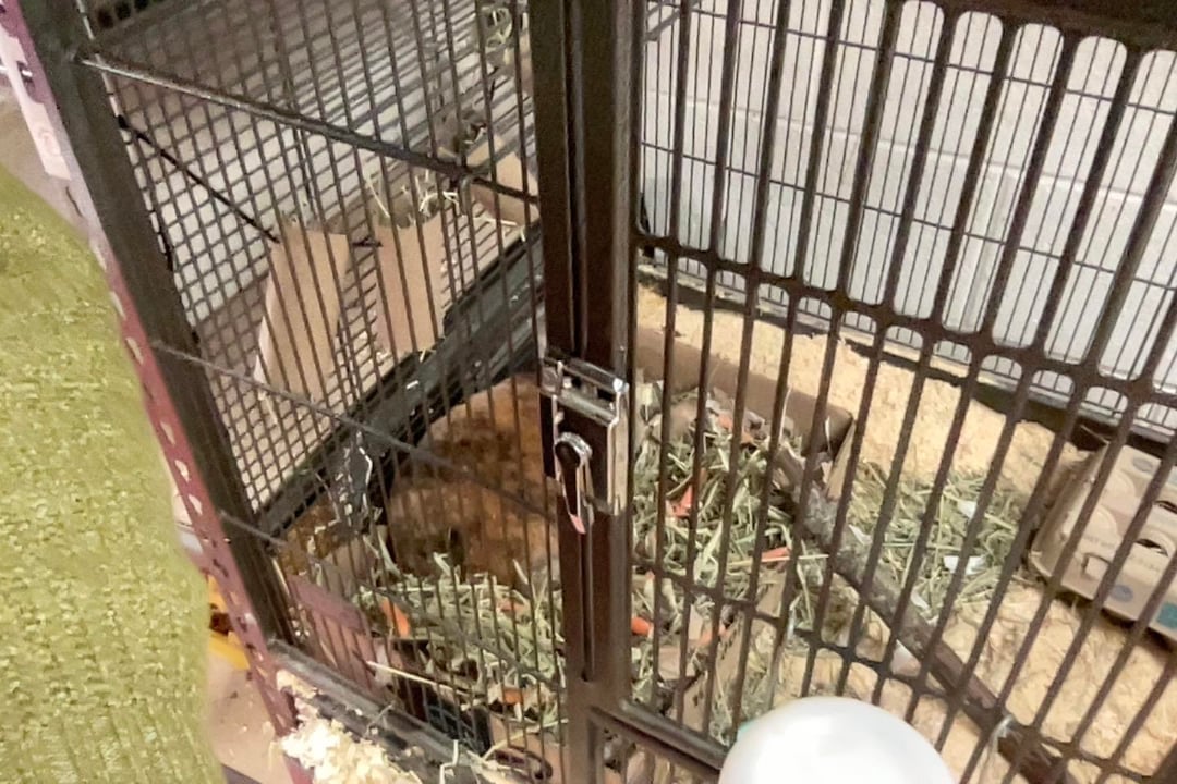 I know the cage isn't very big but that's the best option unfortunately. I think it used to belong to a bird
