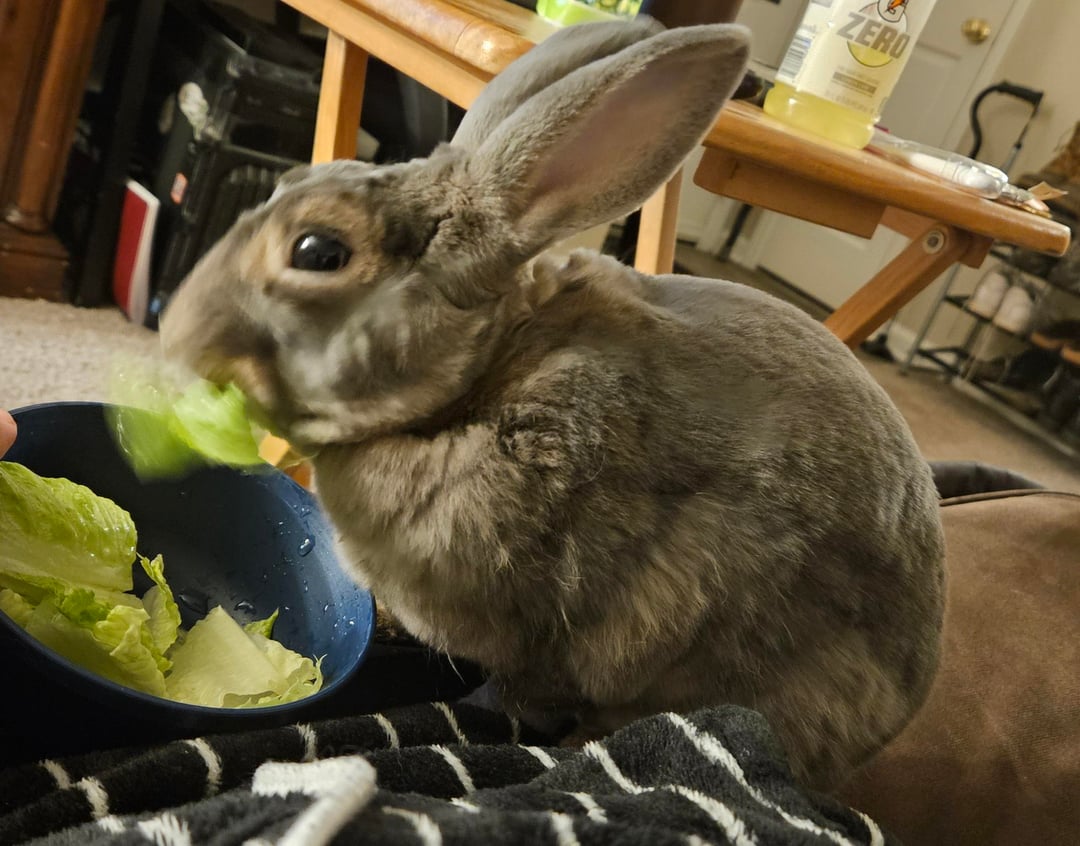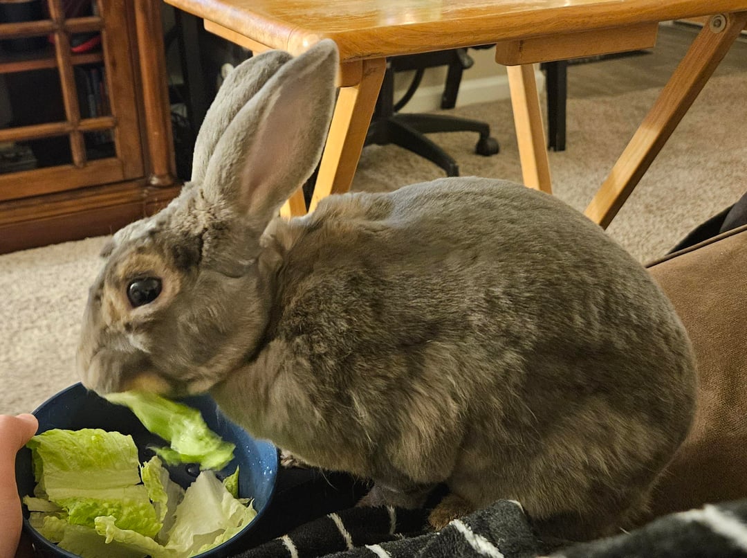 With our help, he has most of his winter coat gone. The only bits that are left are around his legs, chest, and belly. He looks a lot more sleek and slightly darker with his summer coat.by bluedawnflower rabbitsWrite A CommentYou must be logged in to post a comment.