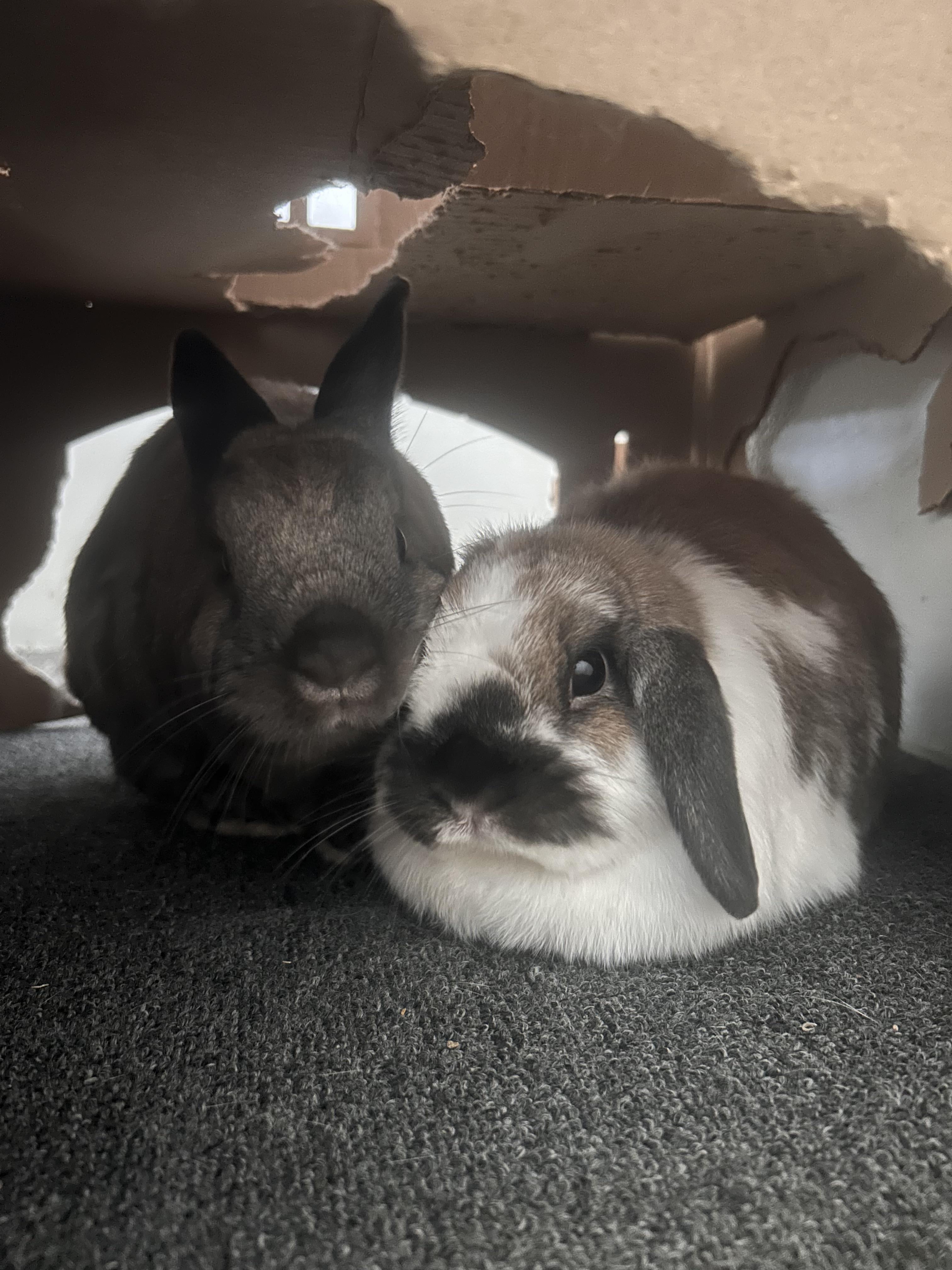 Both buns went to the vet for several courses of baytril. Our mini lop girl had an x ray as well that showed a small spot on her lung but nothing else. I also tried a humidifier, air filter, regular cleaning, shaking dust off hay, and a plethora of herbs. Herbs added in moderate amounts: marjoram, oregano, echinacea root, rose petals, and dandelion root. They eat greens twice a day (cilantro, romaine, and dandelion) and have constant access to hay, of course.