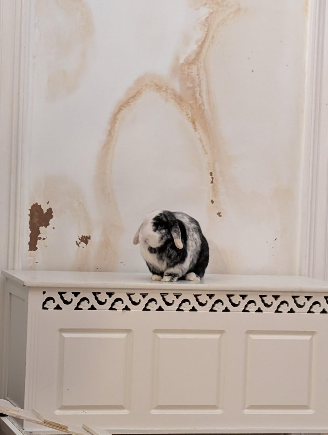 I sort of know why she is chewing the wall. A few days ago the rain flooded through and damaged the outside wall.