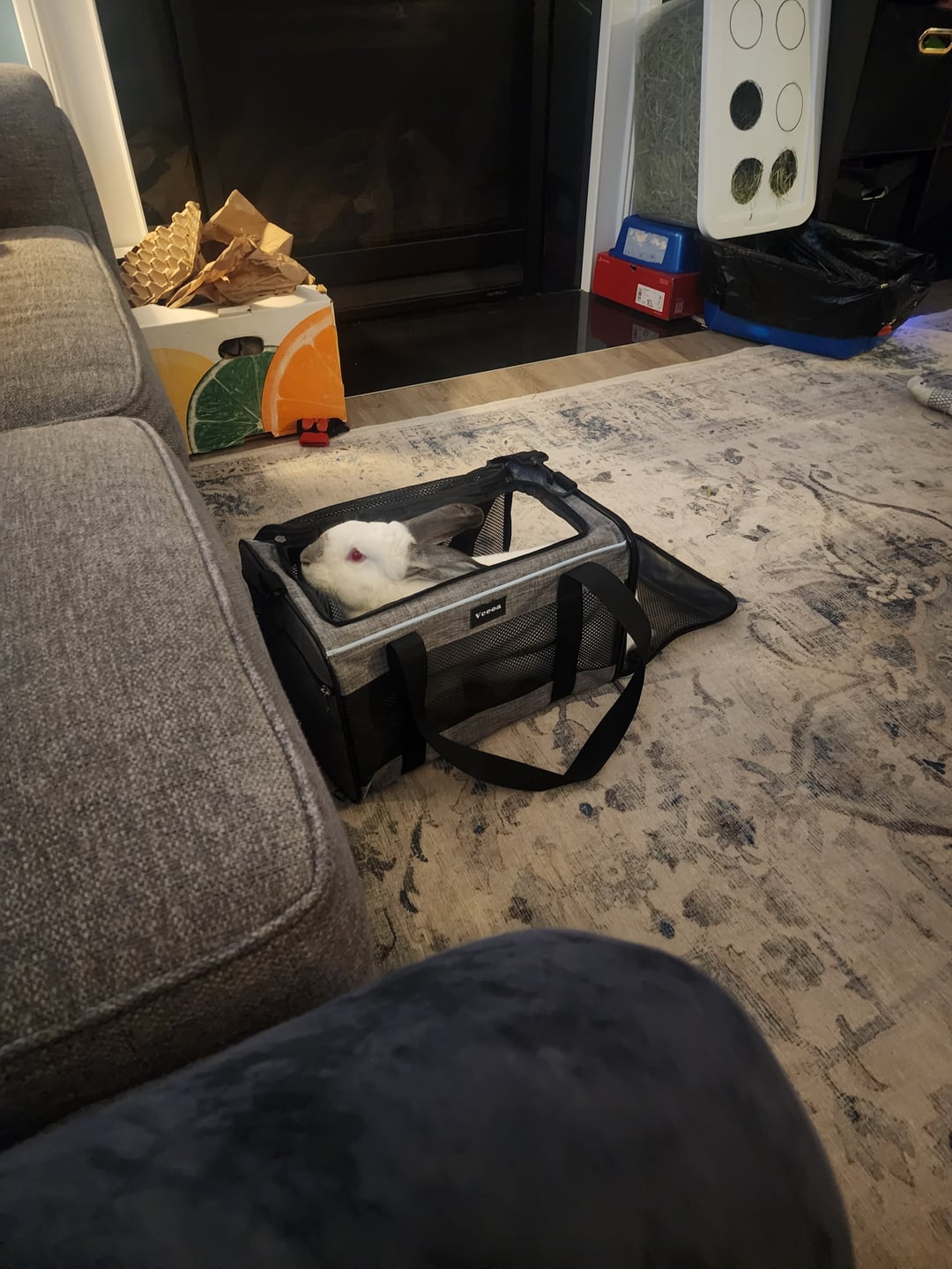If you’re bunny is a chewer I would recommend a hard carrying case. Our silly bunny chewed right through the first one.