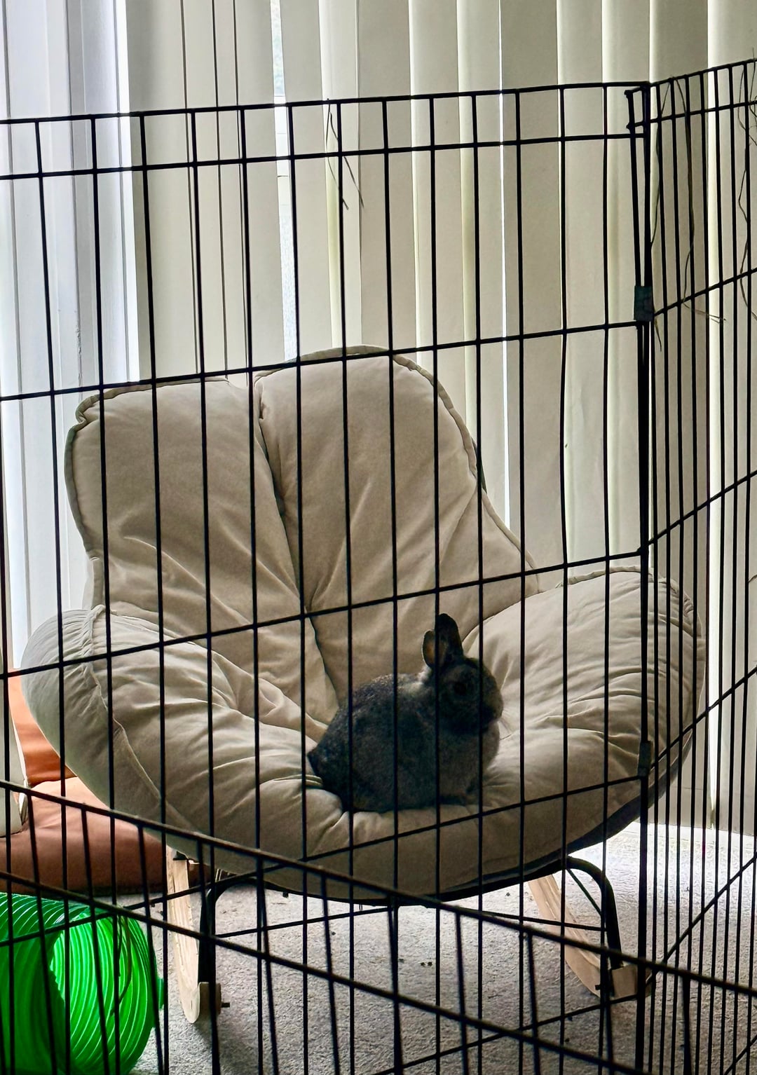 See the orange thing on the floor? That’s HIS chair he does sit on, but nope my chair is better because it’s bigger and rocks and sit Gunther only has the best of the best while I have slave stamped on my forehead