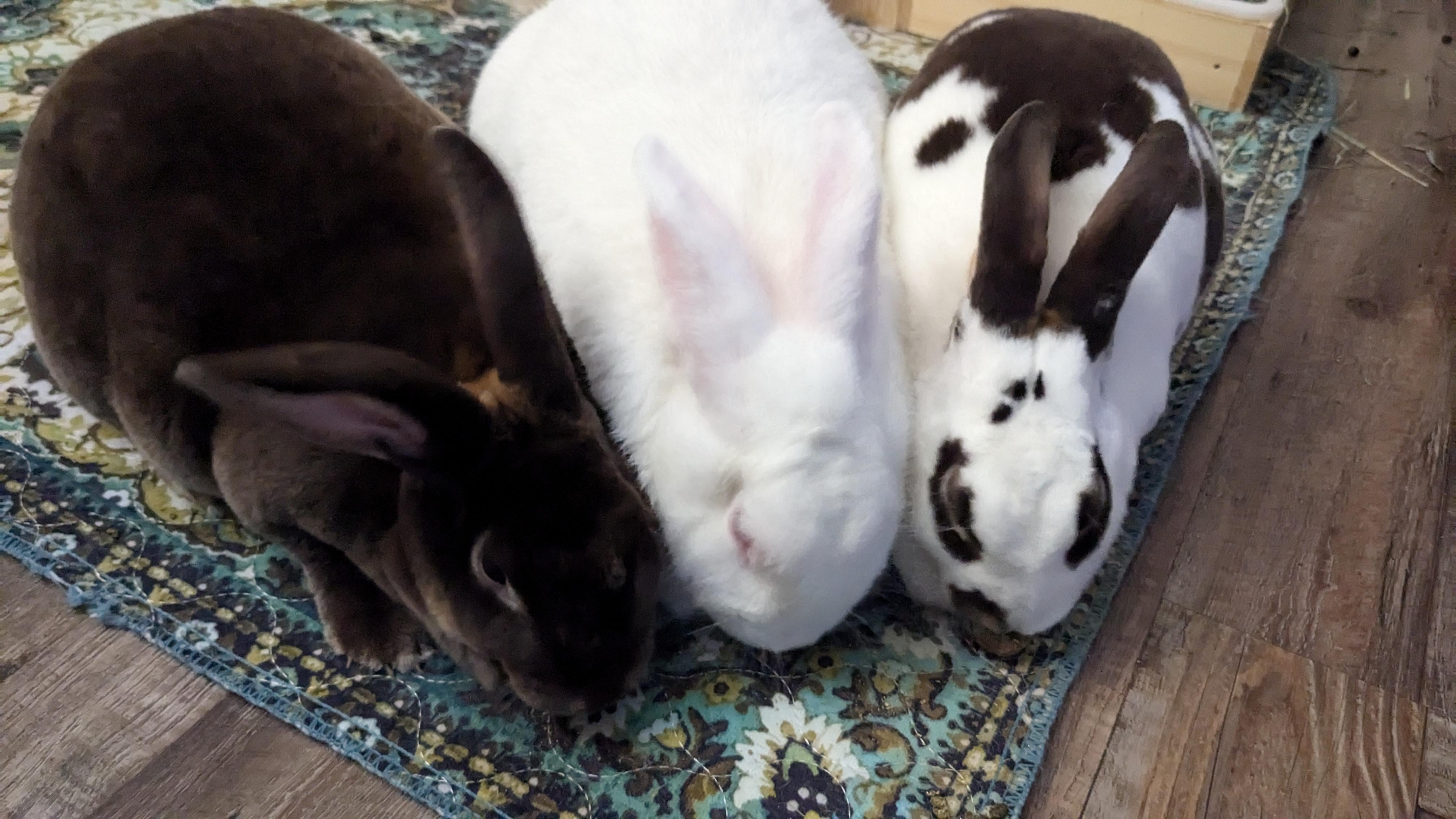 We love them so much. We got Bean and Binx after learning more about rabbits and how they're very social. It took about 3 months to bond them and it took moving to a new place with new smells before they finally got over it lol. They were very interested but Bun about tried to suplex Bean the day we brought them home.