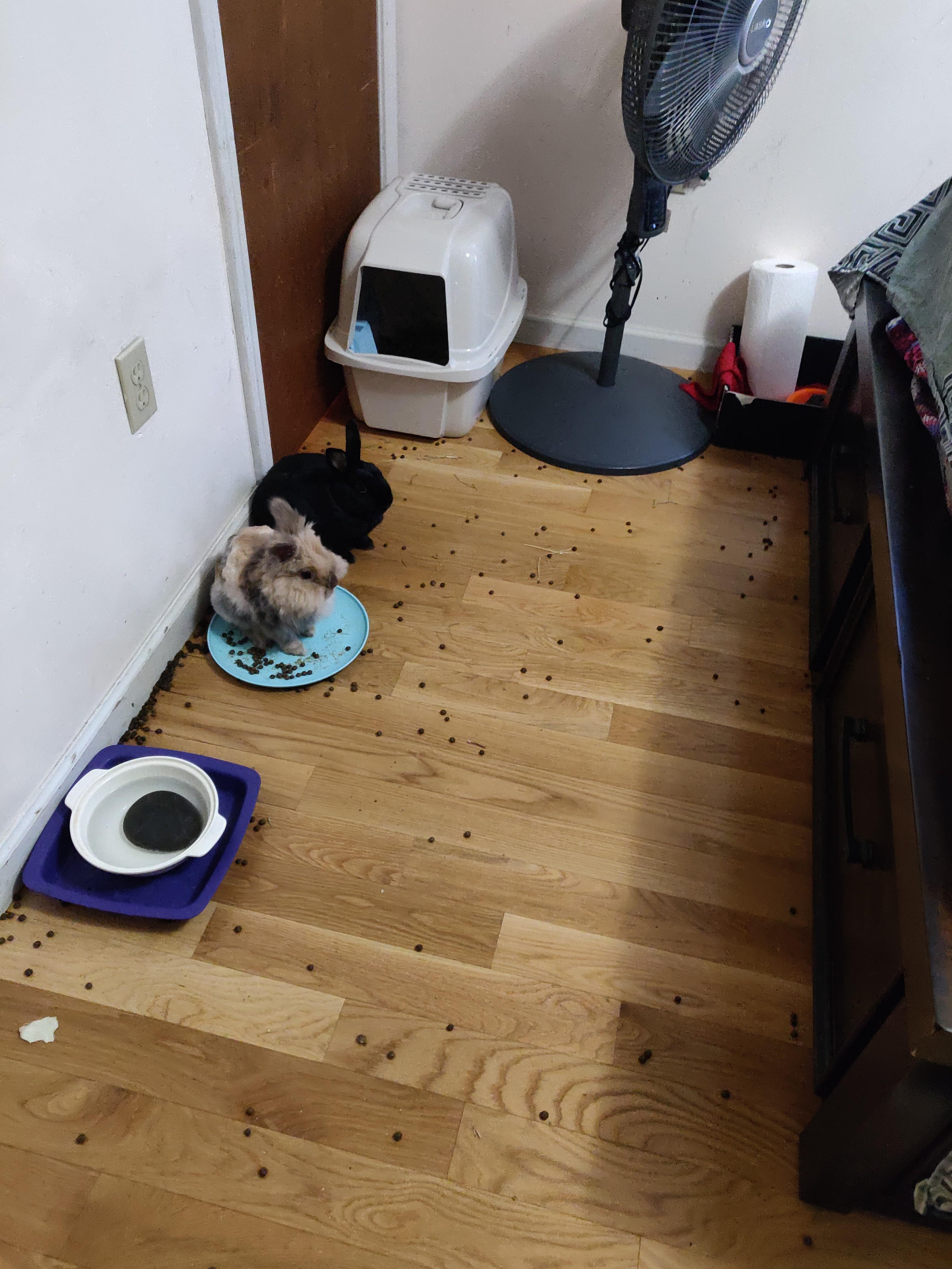 Maybe this is just ime but my buns always hate slick floors, if I’m moving them into a hardwood or tile environment I always put down bath mats or towels for them to hop around on. I’m also scared of them slipping and breaking their tiny arms (seen that happen to someone’s bun—the tiniest cast u will ever see). I would try putting down a comfy surface for them to meander about and see if that stifles the retaliation