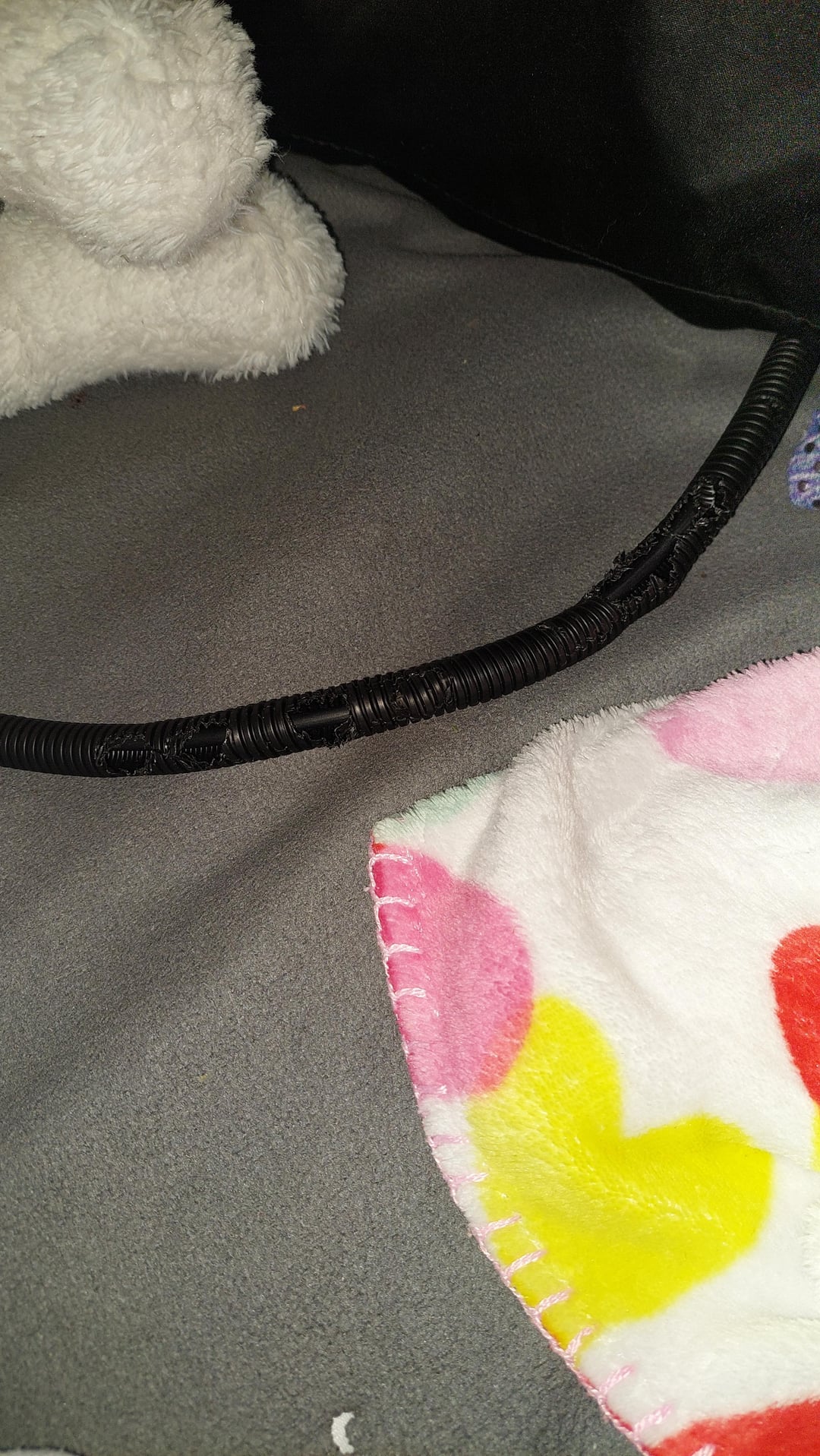 elizzybeth 3 years ago I lost a bunch of cords thanks to that style of cord protector – they’re no match for determined buns!But [flexible metal conduit](https://www.homedepot.com/p/Trident-3-8-in-x-50-ft-Split-Wire-Conduit-Black-1280386/305943530?g_store=&source=shoppingads&locale=en-US&&mtc=SHOPPING-BF-CDP-GGL-D25H-025_003_FASTENERS-NA-NA-NA-SMART-NA-NA-NA-NA-NBR-NA-NA-NA-Fasteners_Smart&cm_mmc=SHOPPING-BF-CDP-GGL-D25H-025_003_FASTENERS-NA-NA-NA-SMART-NA-NA-NA-NA-NBR-NA-NA-NA-Fasteners_Smart-71700000080448963-58700006736537816-92700064304424026&gbraid=0AAAAADq61UcpfHl7hpgyNpwvsYBtJMcl2&gbraid=0AAAAADq61UcpfHl7hpgyNpwvsYBtJMcl2&gclid=EAIaIQobChMI2Irzr7q4-QIV_sLCBB0U0gdcEAQYAyABEgLFUvD_BwE&gclsrc=aw.ds) has been a lifesaver.