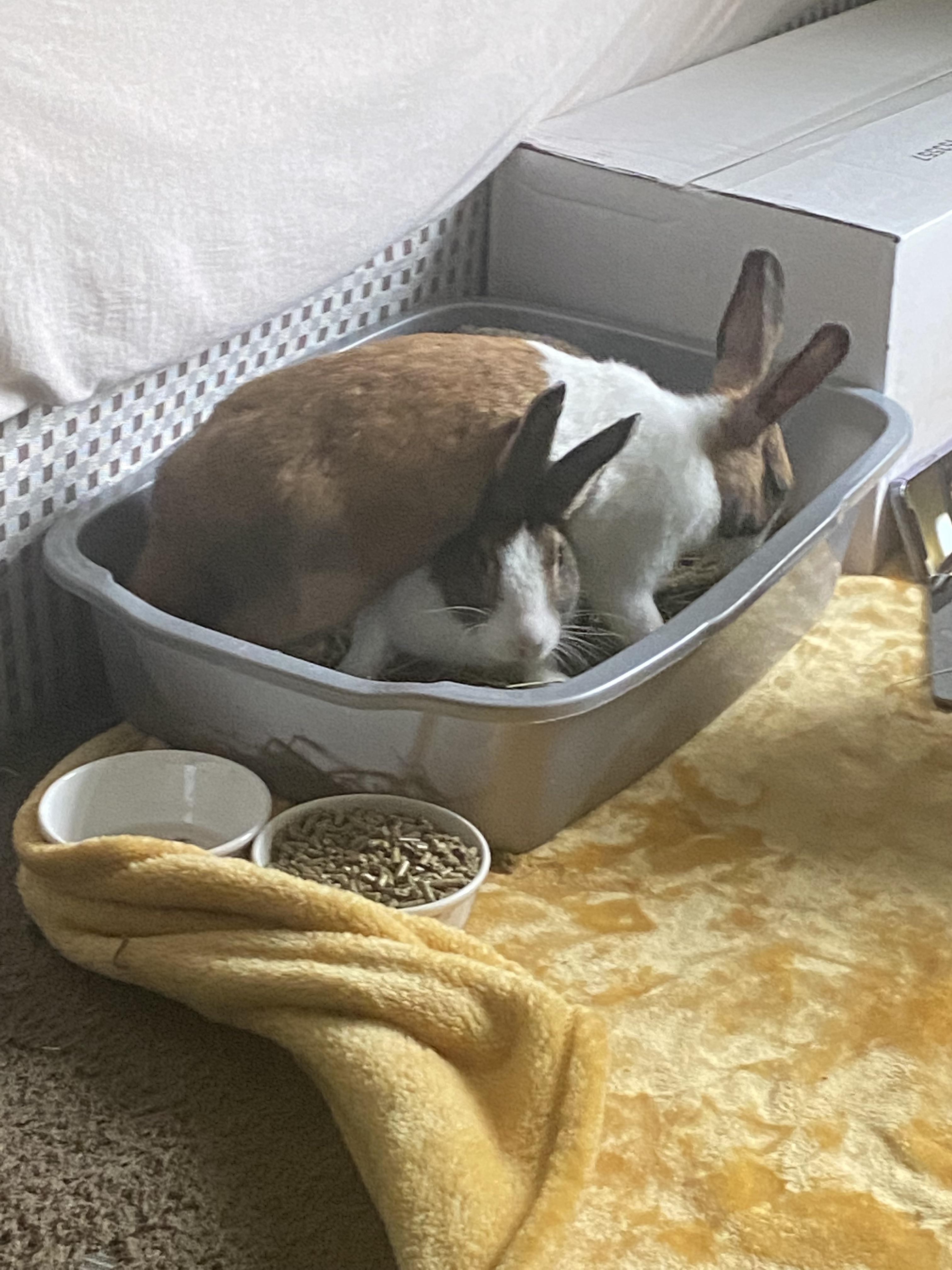 Cr0w1ey 4 years ago Water bowl needs water and pellet bowl needs way less pellets; an egg-cup each is plenty each day, their primary diet should be hay.