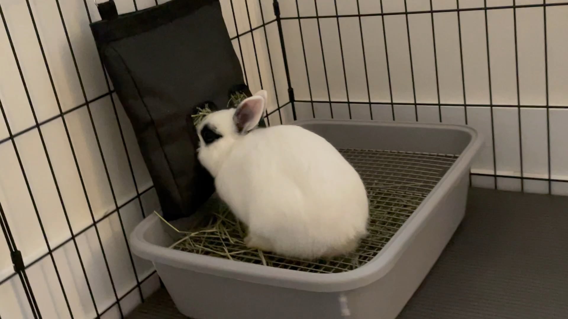 My white and gray rabbit stained her paws with pee yesterday because she tried to dig in a pee spot, then did this exact thing wth is she on