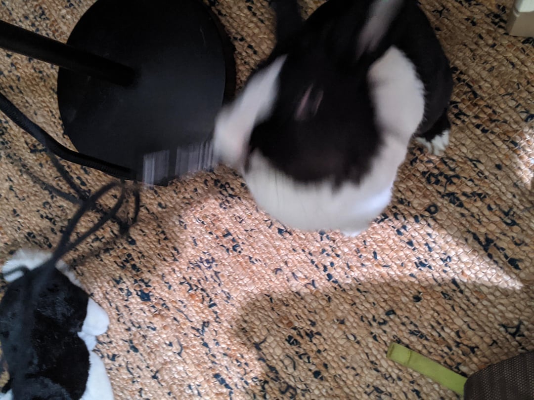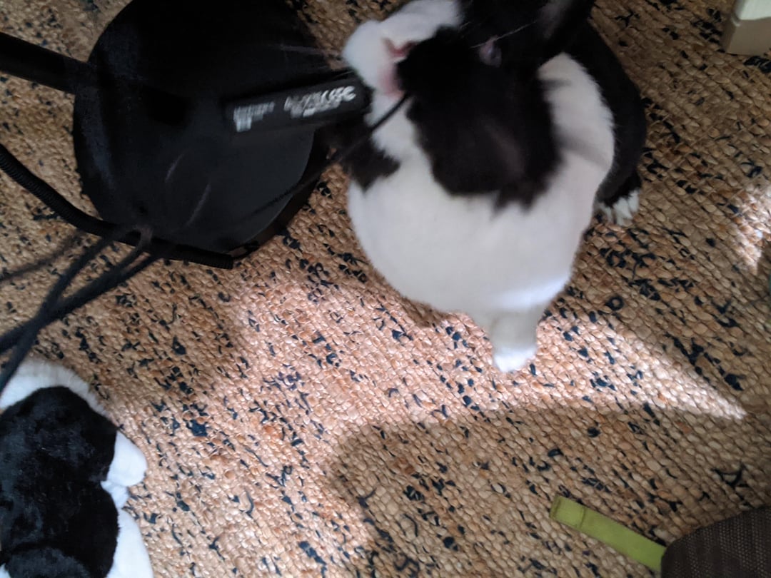 RARE TO CATCH ON FILM, BUNNO CATCHES HIS PREY, THE ELUSIVE SPICY HAY. Trying to get take a picture of his guilty expression after he chewed my headphones— proceeds to grab headphones while I’m taking the picture. 🤦♀️