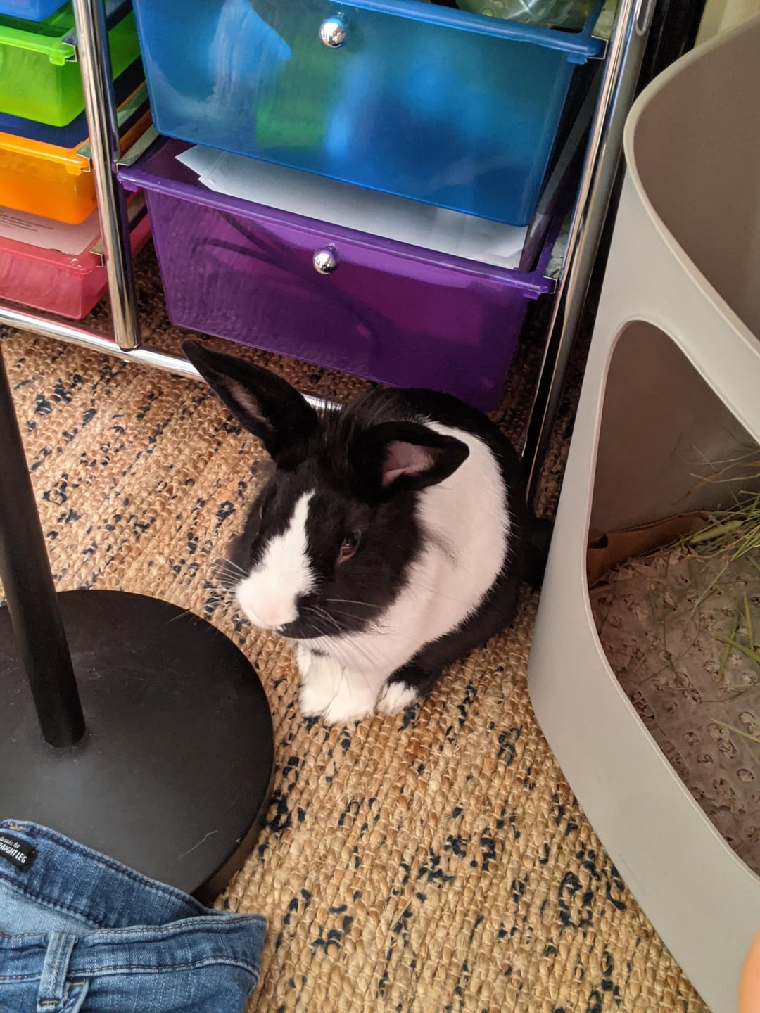 There is no guilt, only chewing more spicy hay. Bunny feels no guilt, spicy hay was asking for it, hanging out where bunny could taste it!