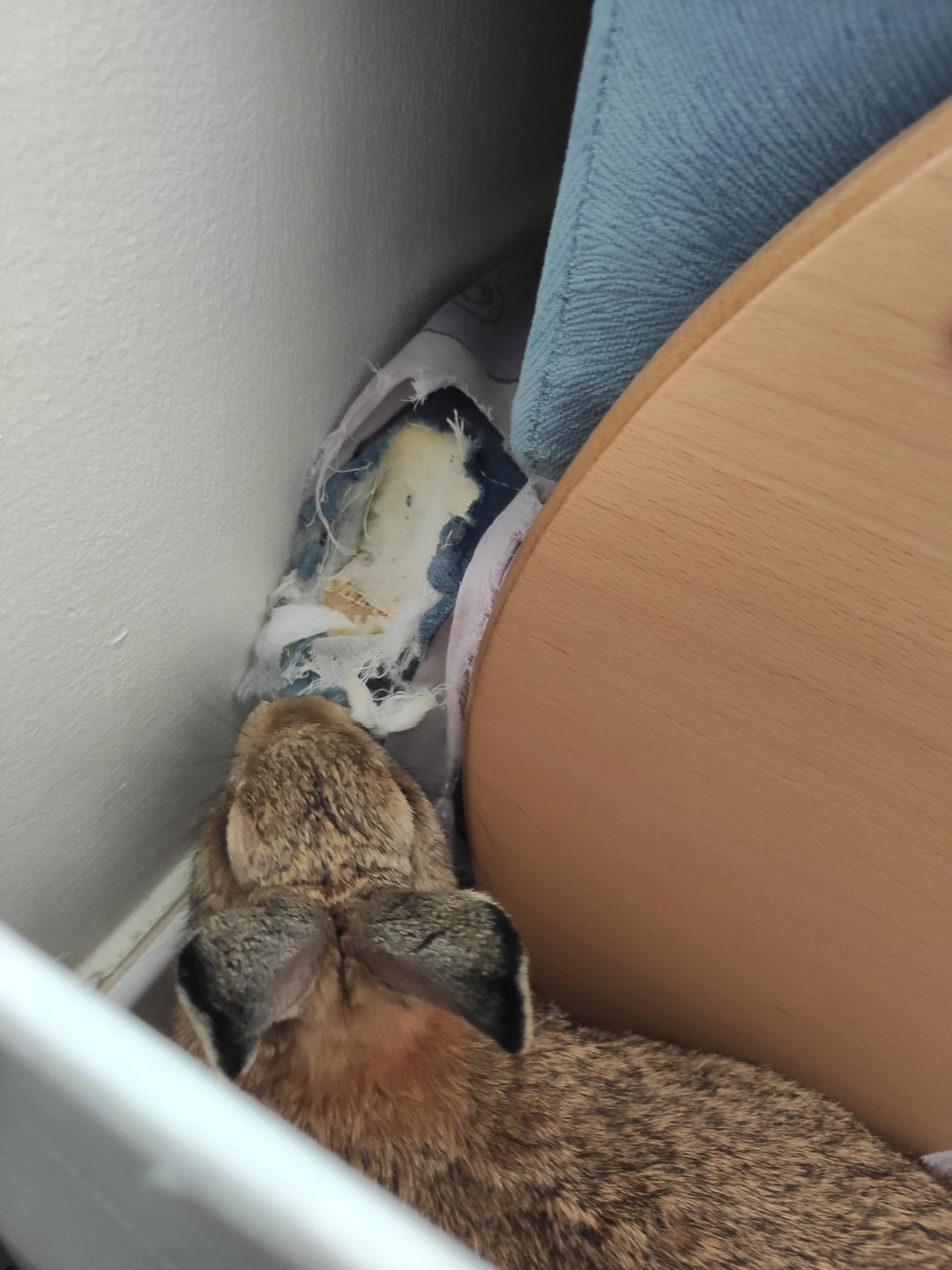 kittykatpg 5 years ago You are not alone. All the corners of my house are torn up to bits like that from all the bunnies who live here 😀