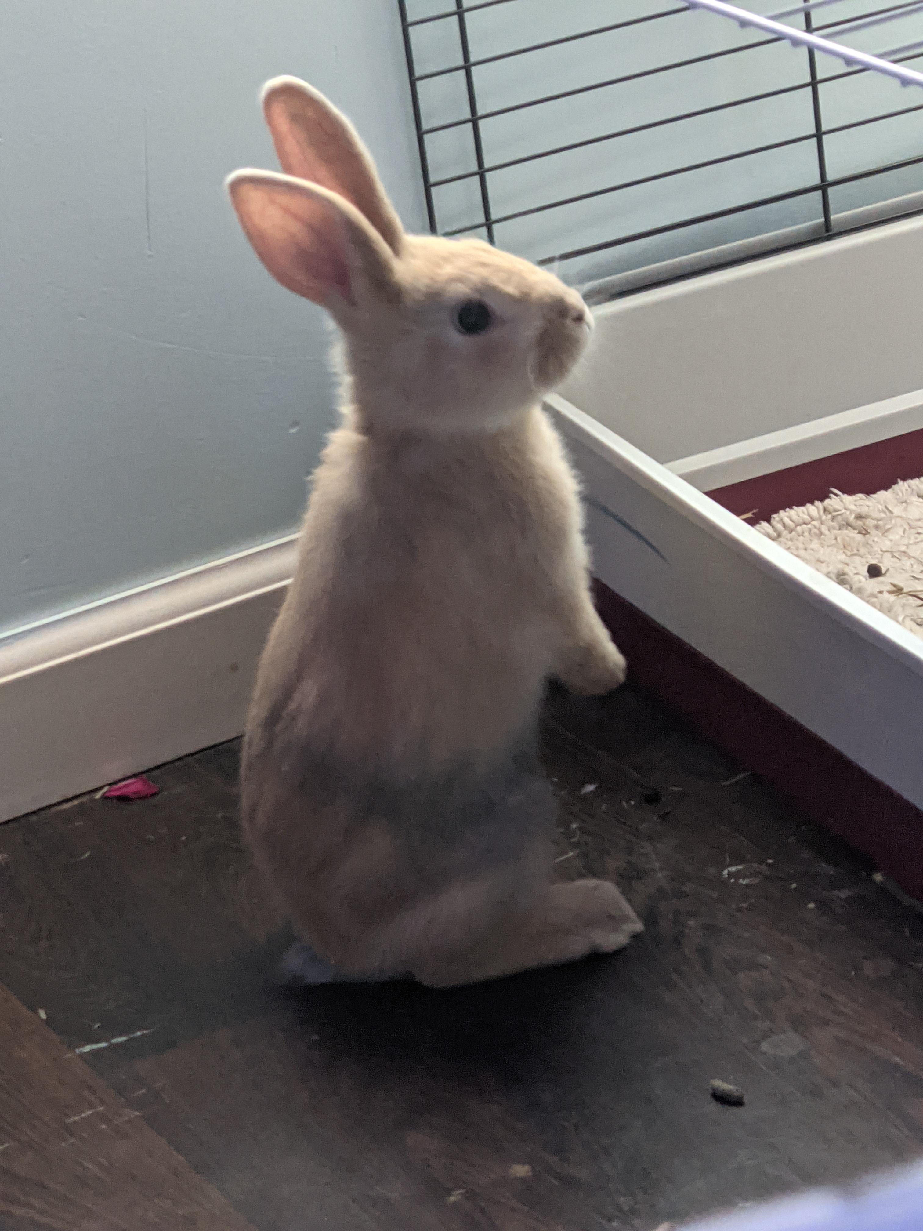 9 week old bunny, but he already looks like a grown up rabbit. He’ll be a big ‘un.