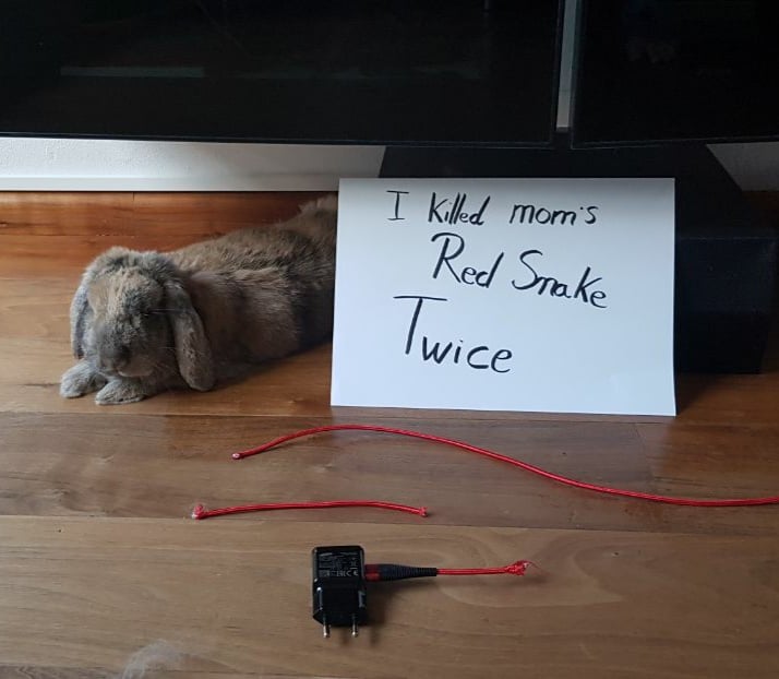 Bun decided that it was time to free owners from the dangerous red snake (aka the charging cable) (x-post r/Rabbits)by sneaky_dragon bunniesbunny shamingWrite A CommentYou must be logged in to post a comment.